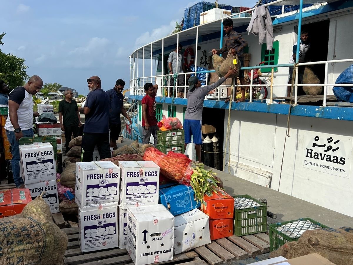 ހަވާސް ބޯޓު ރަށަށް ގެނެސް މުދާ ހުސްކުރުމުގެ މަސައްކަތް ކުރަނީ.